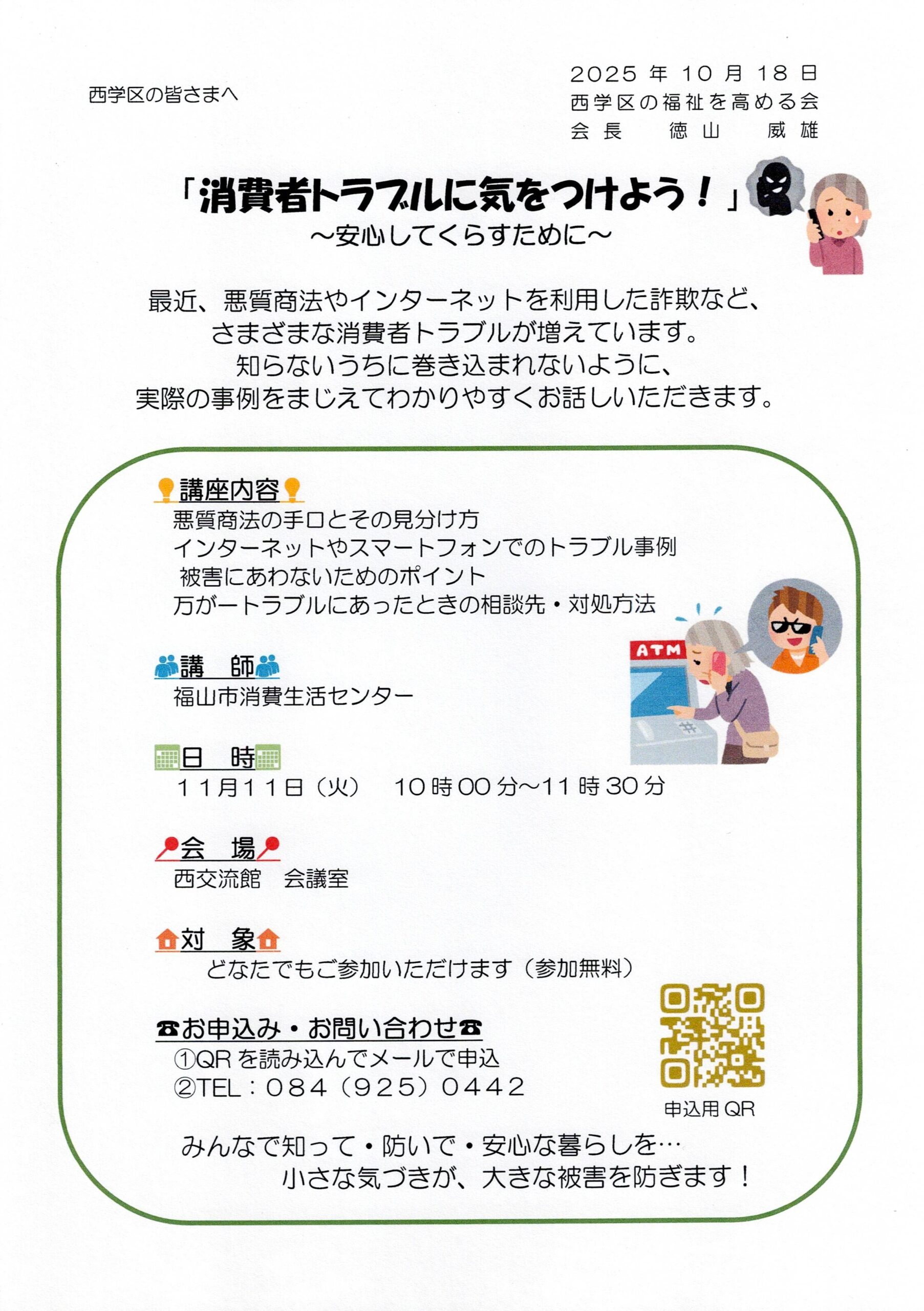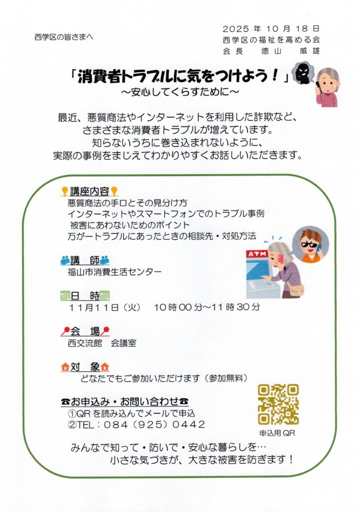 「消費者トラブルに気をつけよう!」講座のご案内です