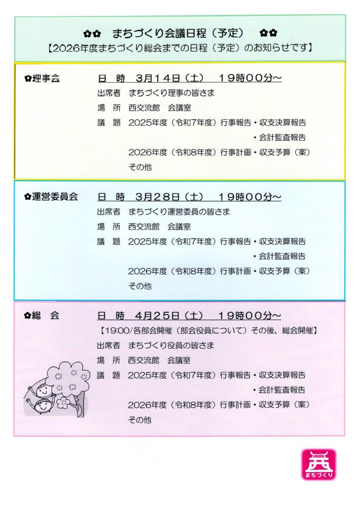 「2026年度 まちづくり総会」までの日程です。
