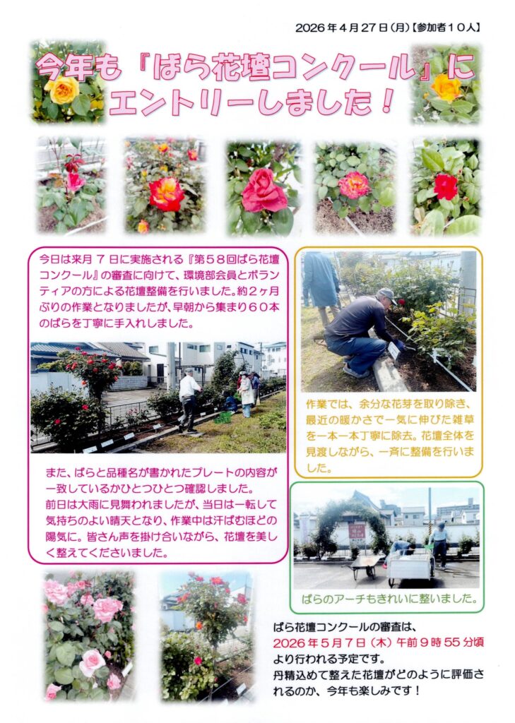 今年も「ばら花壇コンクール」にエントリーしました!