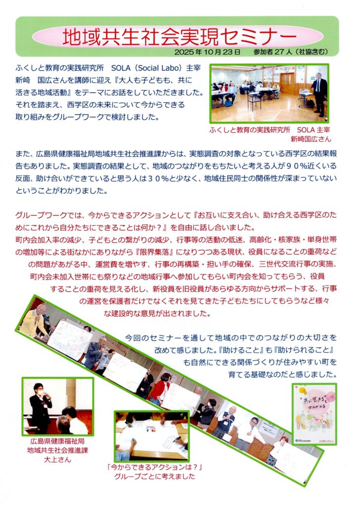 地域共生社会実現セミナー「大人も子どもも共に生きる地域活動」受講しました