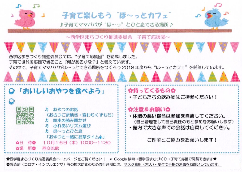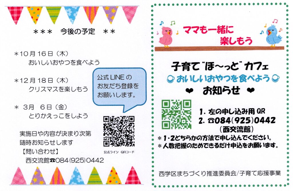 子育て”ほ~っとカフェ”🍩おいしいおやつを食べよう🍪のご案内です