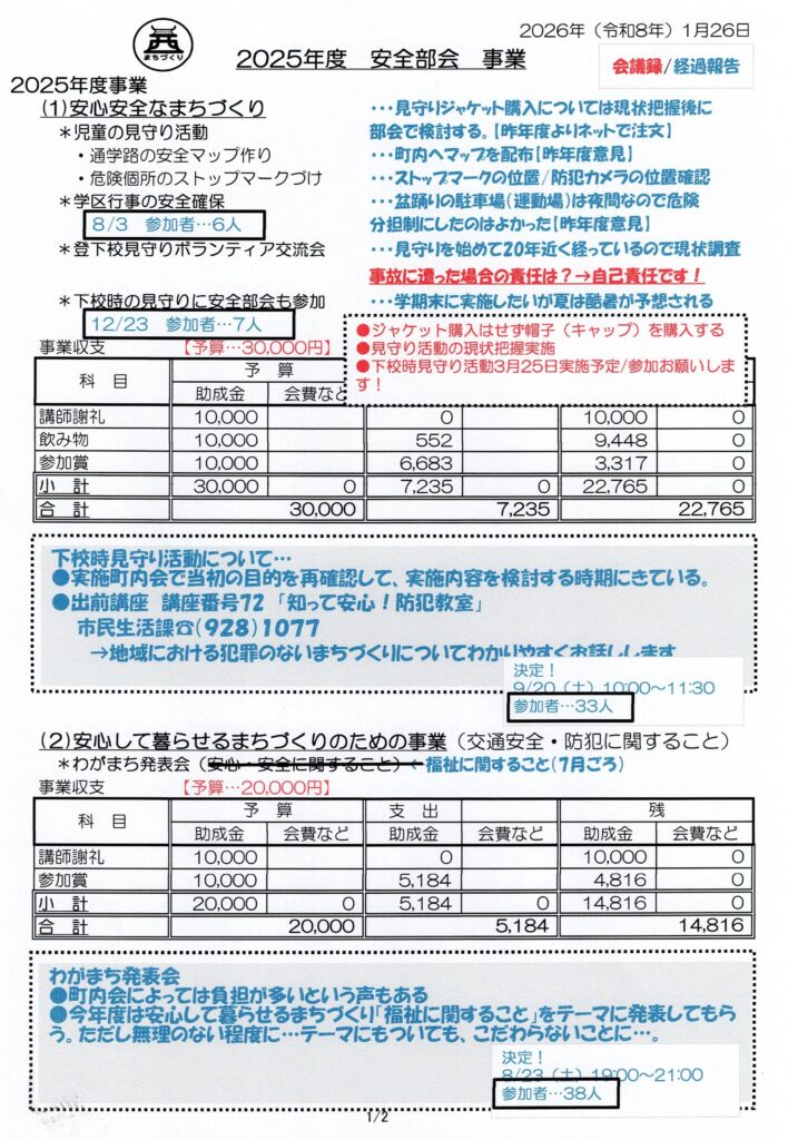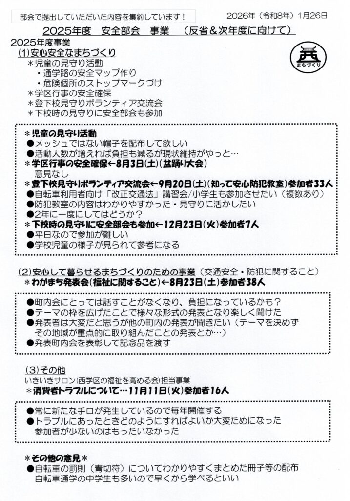 安全部会 2025年度事業・反省&次年度に向けて(議事録)