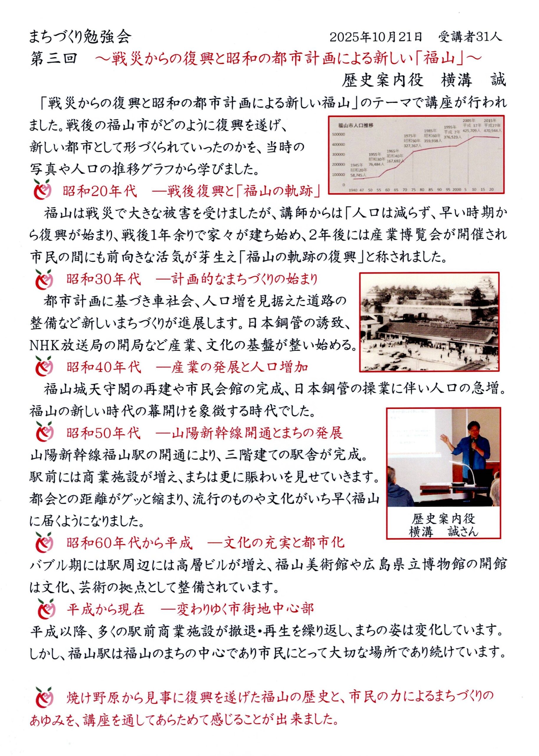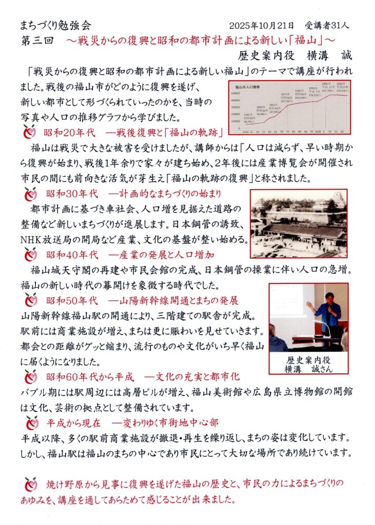 戦災からの復興と昭和の都市計画による新しい福山(第三回)開催しました