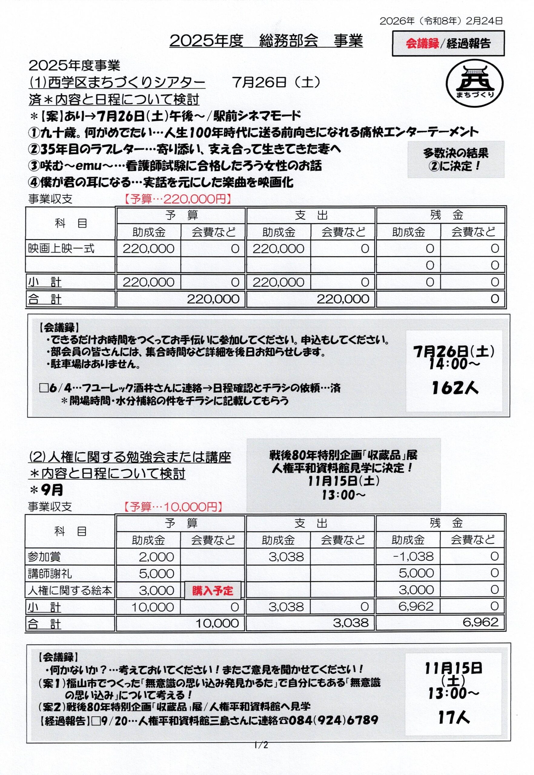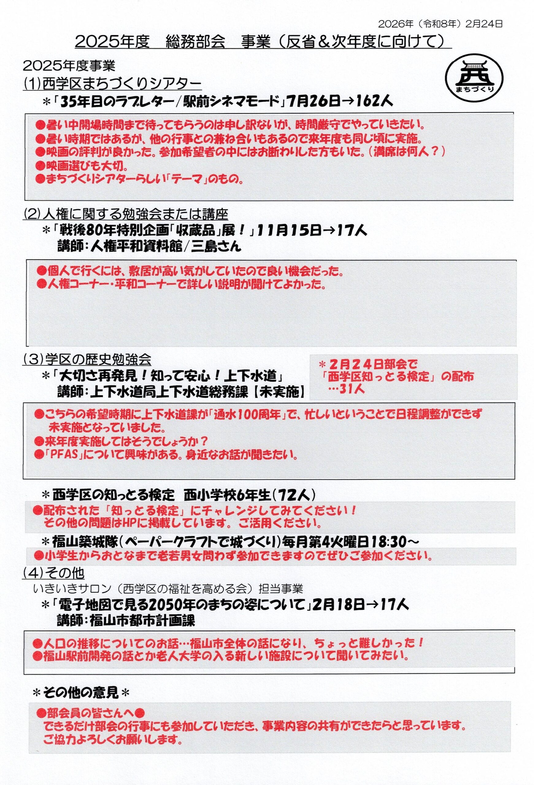 総務部会 2025年度事業・反省&次年度に向けて(議事録)