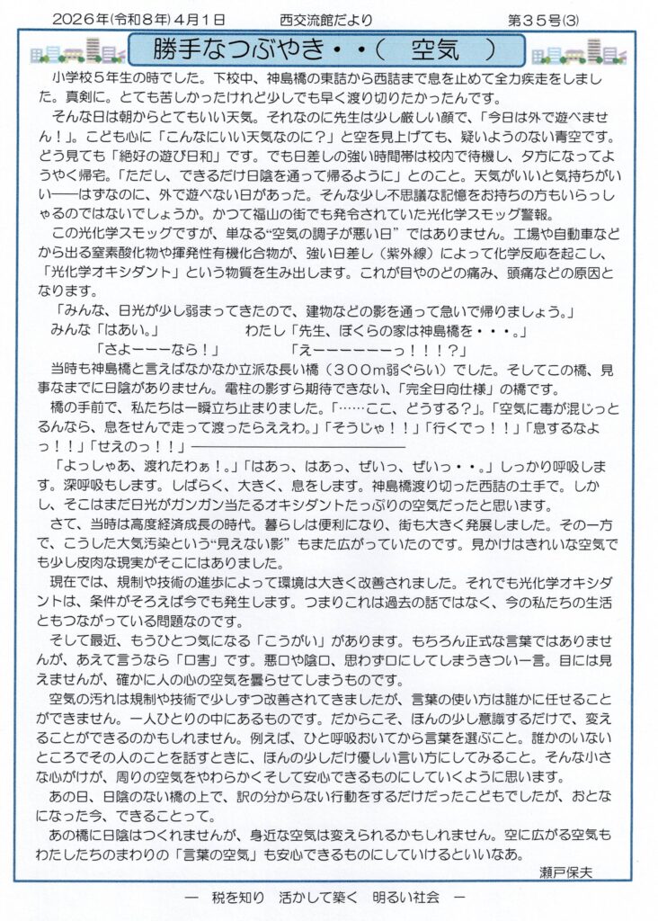 p3、勝手なつぶやき(西交流館 館長)