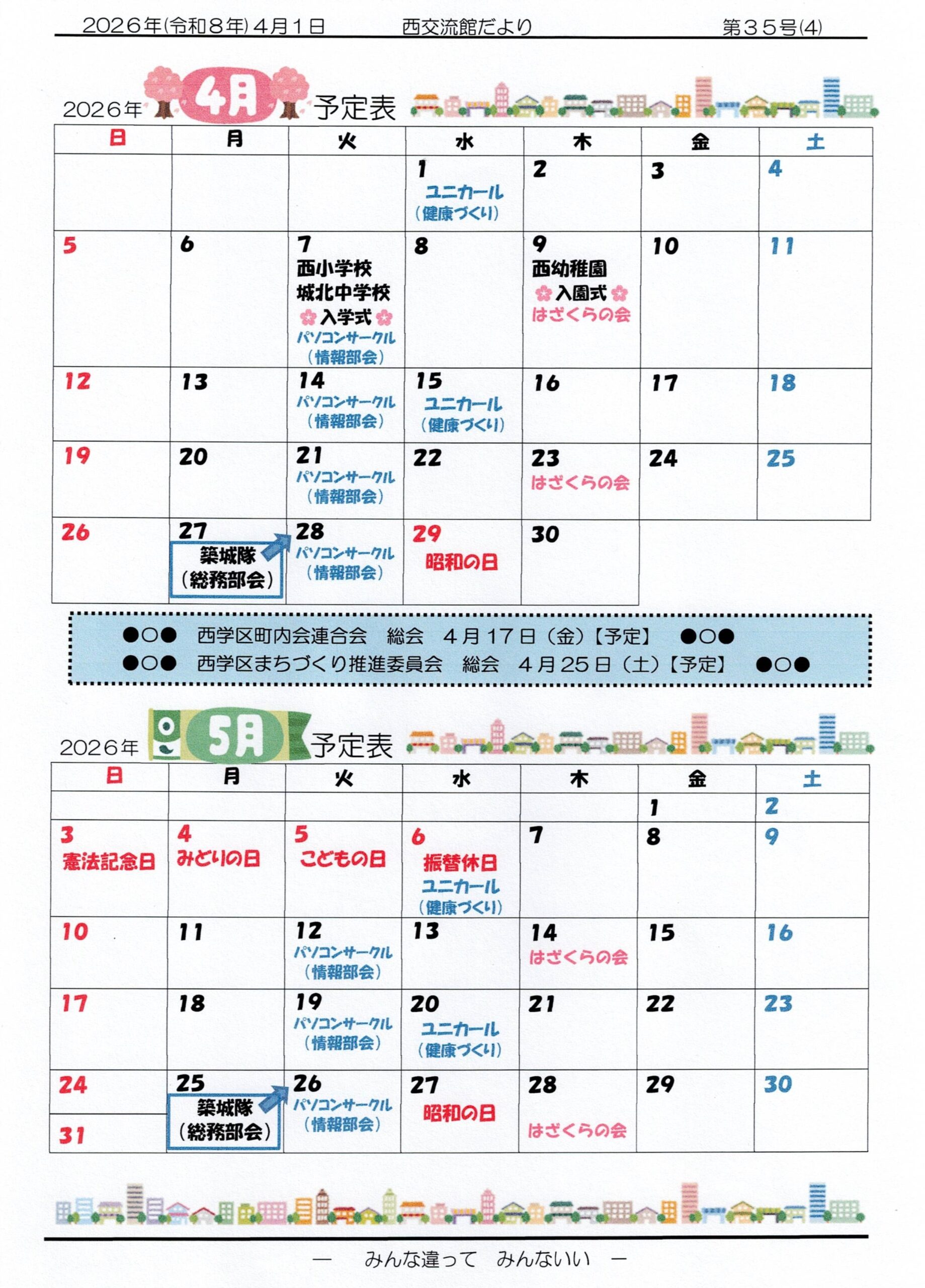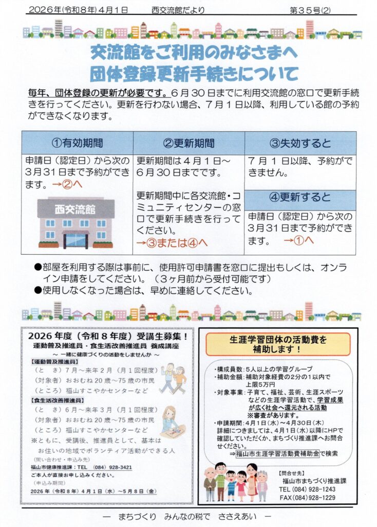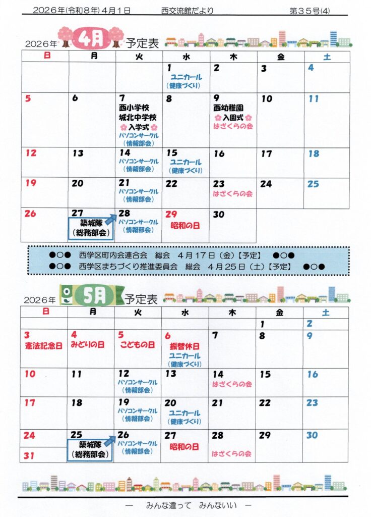 p1、2026年度がスタートします!‥西交流館 職員一同ほか