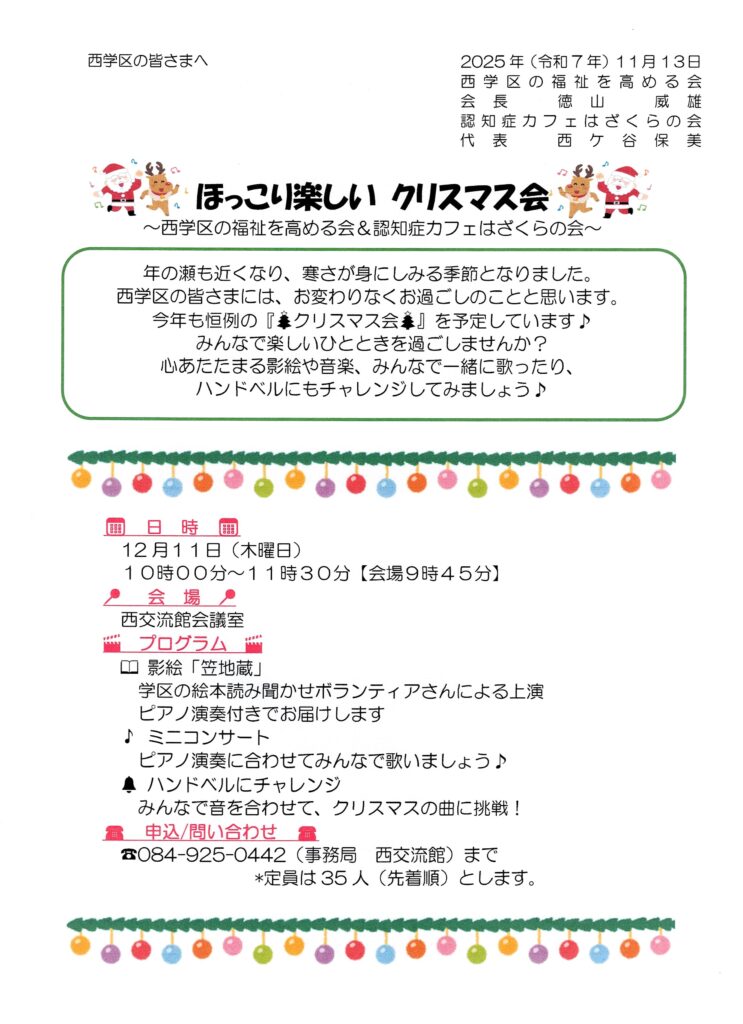 🎄ほっこり楽しいクリスマス会🎄のご案内