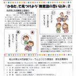 2016年9月2日 / 最終更新日時 : 2025年3月10日 admin 総務部会 『西学区まちづくりシアター』参加者募集 福山市を舞台として難聴の子どもを持つ若夫婦(坂本 九・大谷直子)の苦闘を描いた『泣きながら笑う日』の上映会です。 各団体・町内会に参加者を割り振り、呼びかけをします。 西小学校、福山の40年前の景色もスクリーンに映し出さ […]